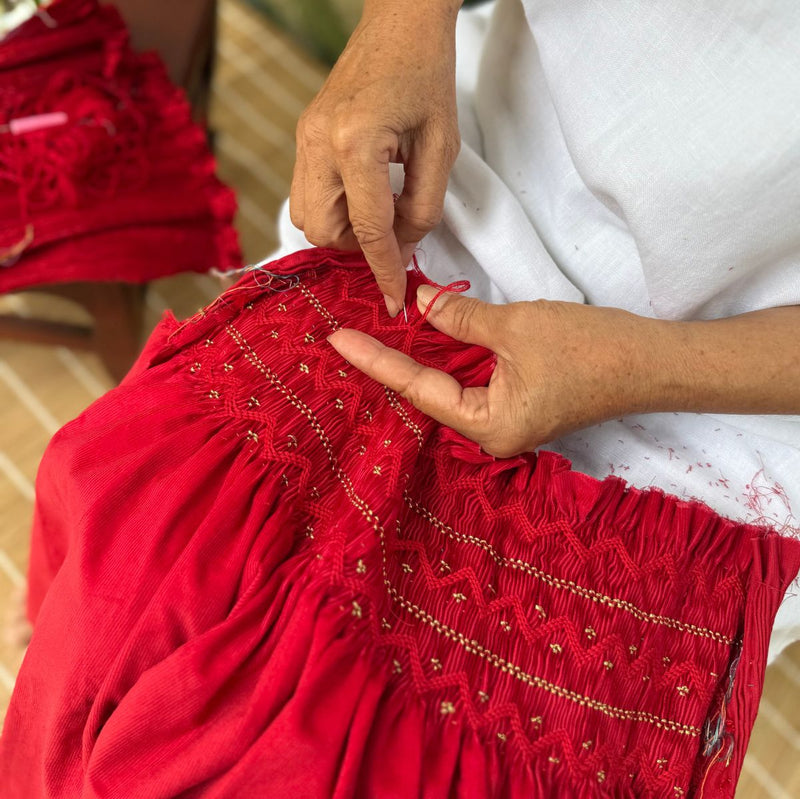 We are the artisan fashion brand on a mission to modernise the beautiful art of smocking for the 21st century girl. With our joyful rainbow palette, feminist spirit and ethical approach to craftsmanship, we breathe new life into this ancient, hand-stitched craft.