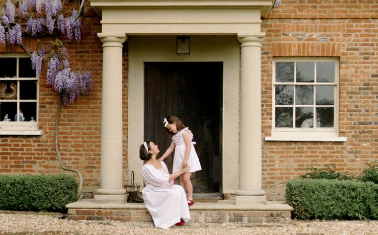 Inspired by the romantic tale of the world's first computer programmer, daughter of poet Lord Byron, this joyful gown is made from acres of herringbone weave, winter-weight cotton block printed with vibrant marigolds gathered into a classic Bishop Smock neckline adorned with a blaze of hand smocked zigzags in bold red threads. The A-line shape, raglan shoulder and keyhole opening create a flattering vertical silhouette that is softened and enhanced by a wealth of unapologetically feminine details - a dainty frill neckline, dramatic blouson sleeves with richly smocked cuffs, a wonderfully generous frill finish, cross-stitch trim and a detachable sash tie. Add it all together to create a show stopping smocked frock sure to keep you warm and fabulous.